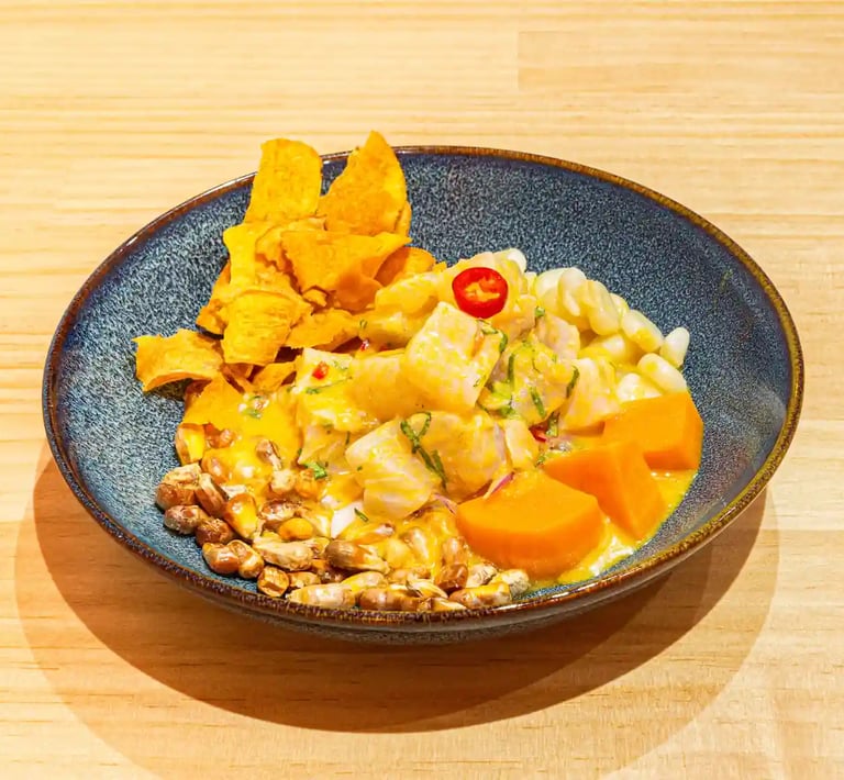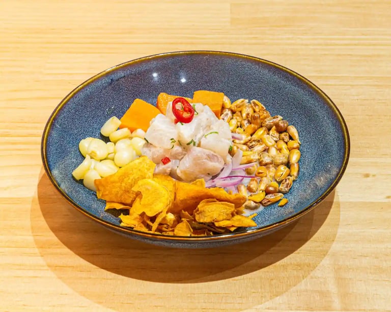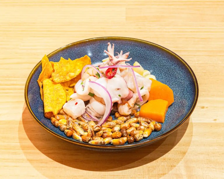 Explore our mouthwatering Peruvian ceviche dining experience through images.